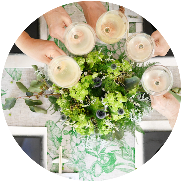 レッスン終了後は、季節に合わせたテーブルセッティングで、ワインやお料理に合わせたお飲物とお食事を召し上がっていただきます。